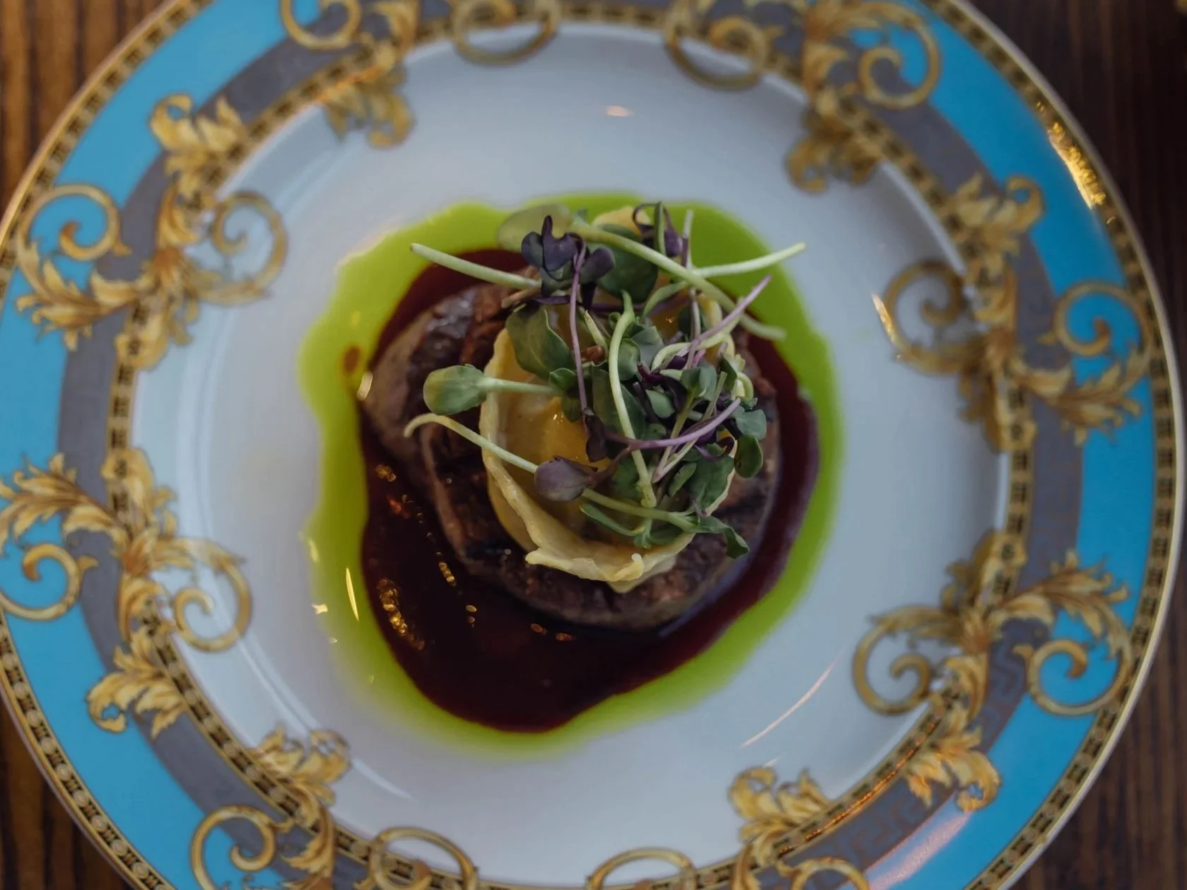 Cacio e Pepe tortelloni, served on Versace